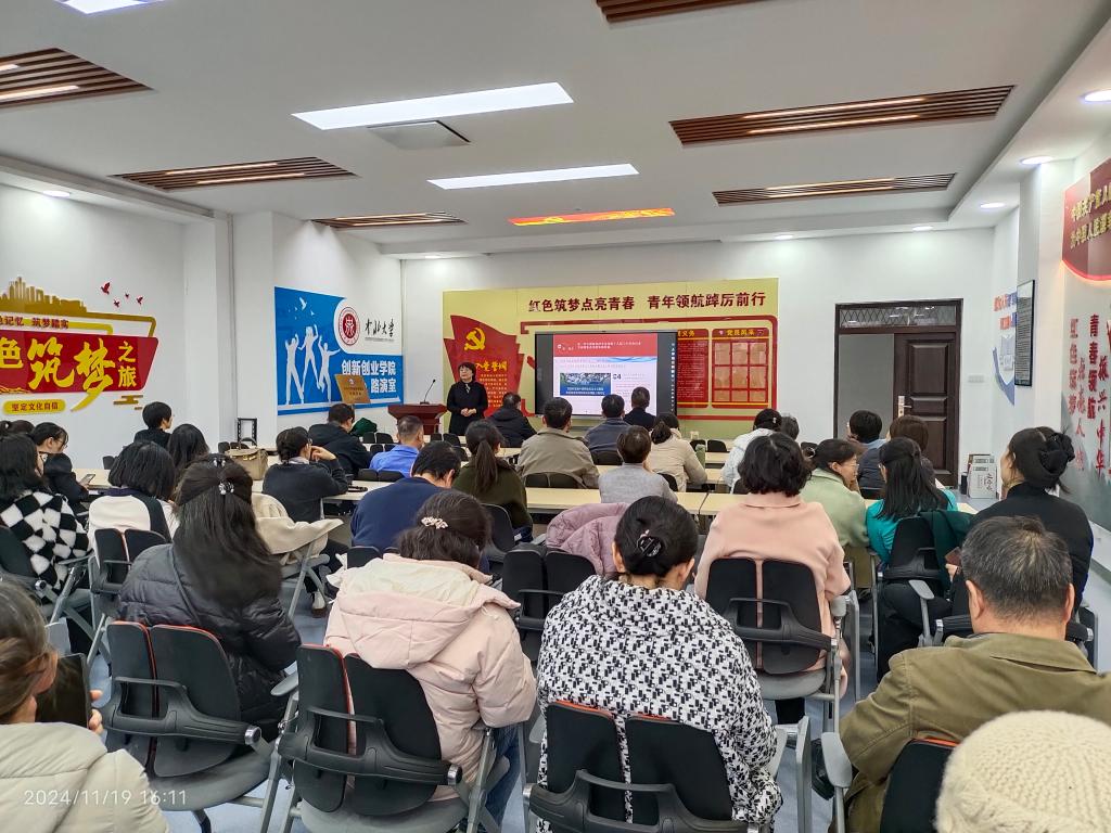 党的二十届三中全会精神宣讲团成员班惠英老师在A406室以“准确把握进一步全面深化改革的重大意义和总体要求”为主题开展宣讲活动,乐天堂Fun88全体党员和教工参加了此次宣讲活动,会议由王黎明院长主持。