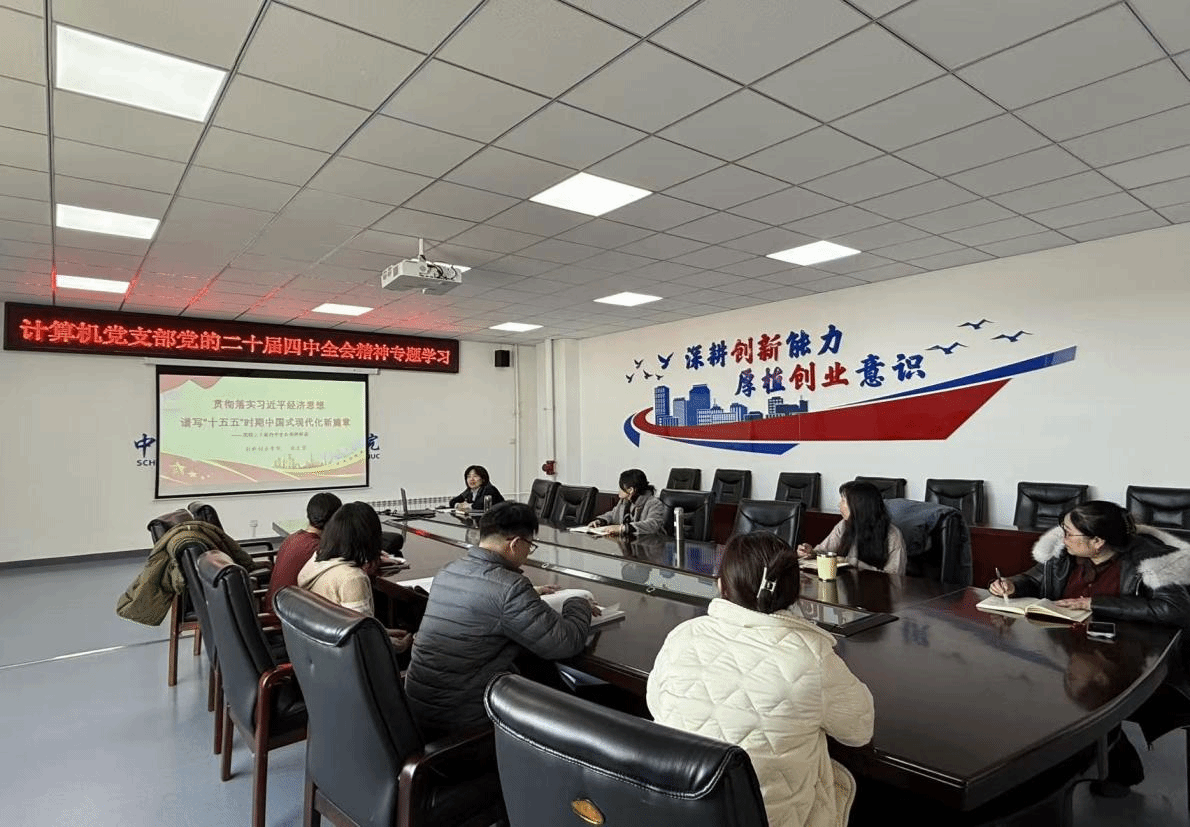 为深入学习贯彻党的二十届四中全会精神,切实把思想和行动统一到党中央决策部署上来,2025年12月17日上午,乐天堂Fun88 计算机基础教工党支部在A401会议室举办专题学习宣讲会,支部邀请乐天堂Fun88副院长姬文芳作题为《贯彻落实习近平经济思想 谱写“十五五”时期中国式现代化新篇章》的宣讲报告,支部全体党员参加学习。