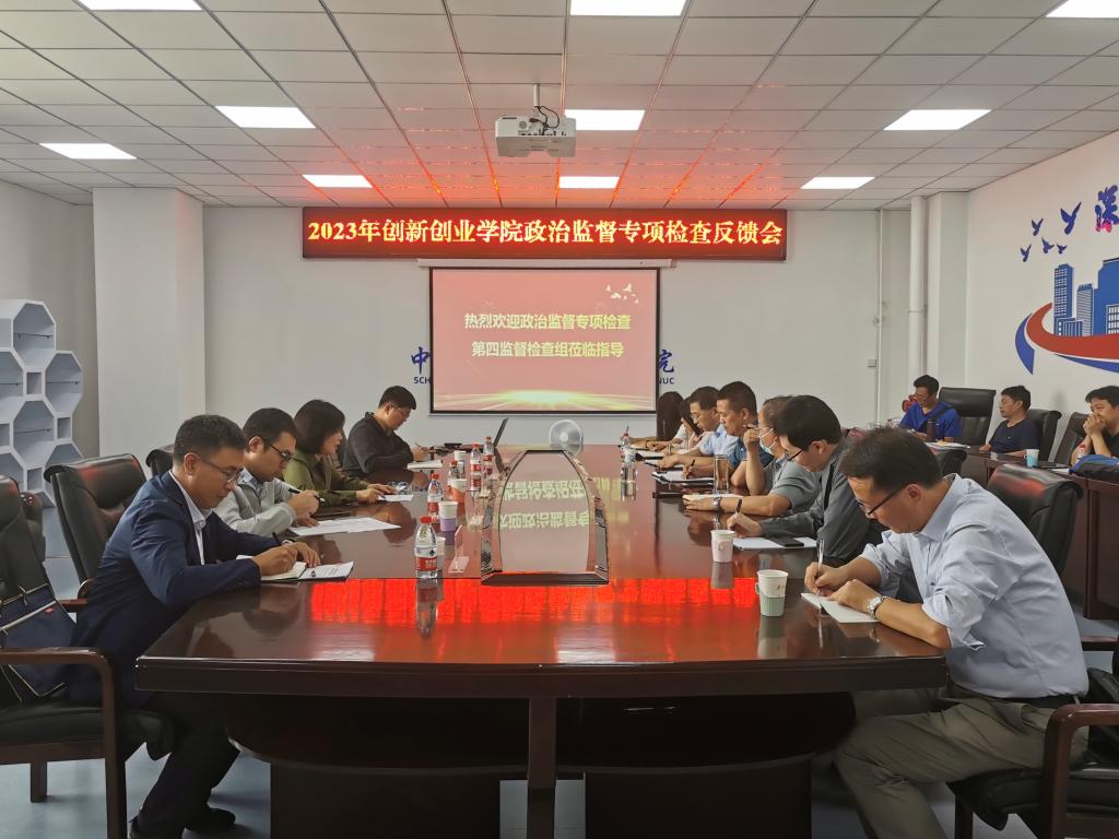 2023年9月22日,学校政治监督专项检查第四检查组莅临我院召开政治监督专项检查情况反馈会。检查组组长孟建新及成员乔晓鹏、田维飞、史瑞根出席会议,乐天堂Fun88领导、各党支部书记、各科室负责人参加了会议。会议由乐天堂Fun88党总支书记高春强主持。