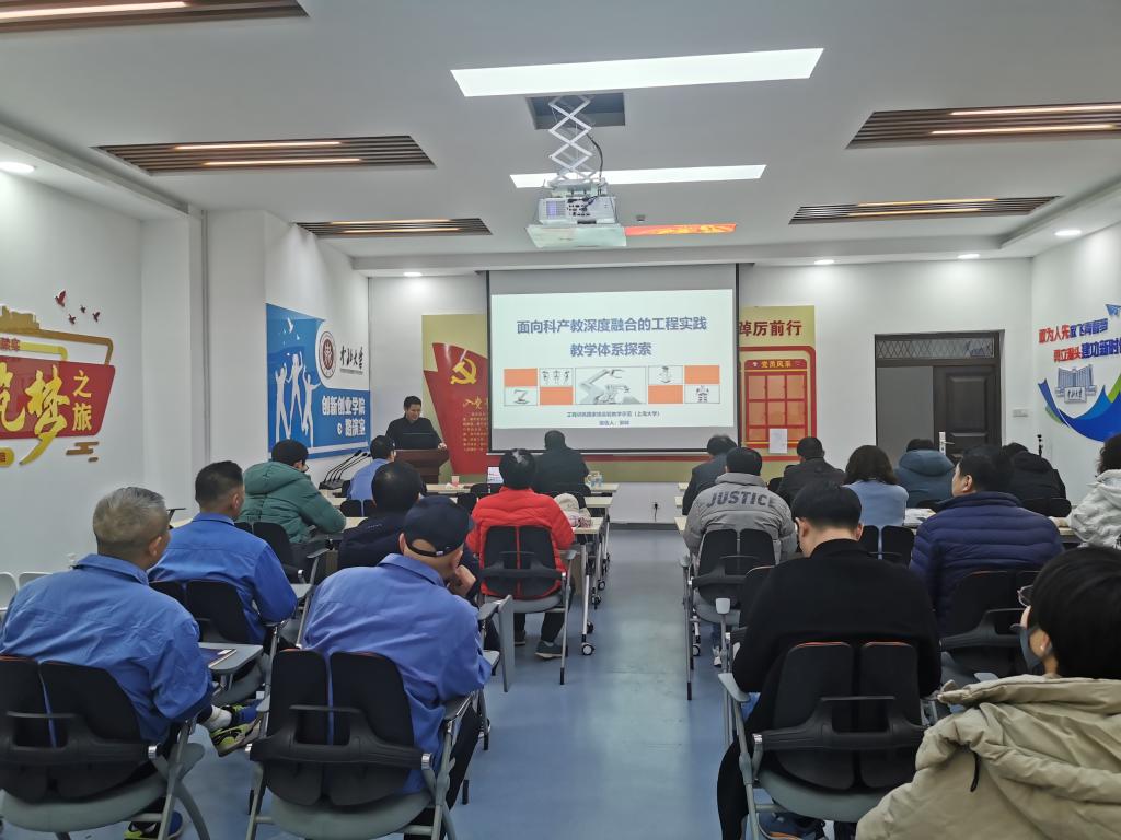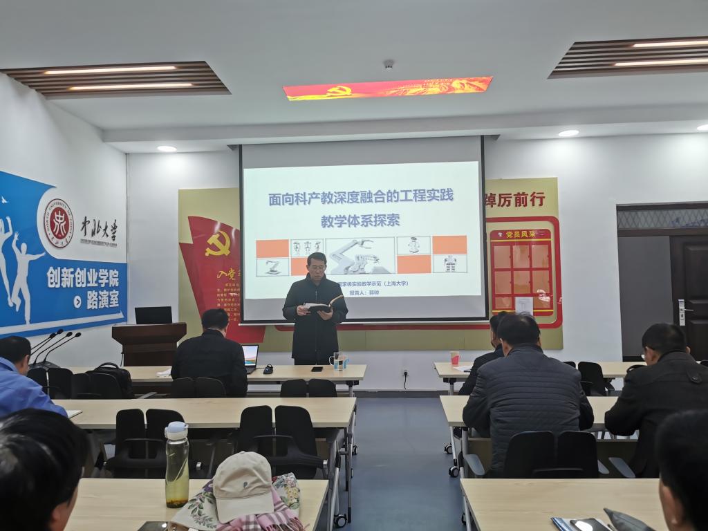 2023年11月27日,上海大学工程训练中心主任郭帅教授应邀为我院教职工作了题为《面向科产教深度融合的工程实践教学体系探索》的专题报告。报告由我校工程训练中心副主任冯再新教授主持,乐天堂Fun8840余名教职工听取了报告并参与交流讨论。