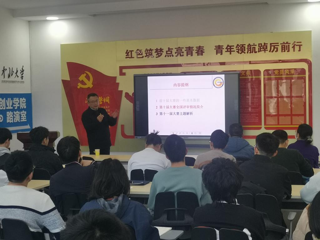 指导表示非常感谢,他指出王教授具有丰富的大赛指导和评审经验,希望我们的参赛教师和学生多向王教授“取取经”,精心打磨参赛作品,让更多的学生在比赛中锻炼成长,发挥学科竞赛在培养学生实践创新能力及提高学生综合素质等方面的积极作用。