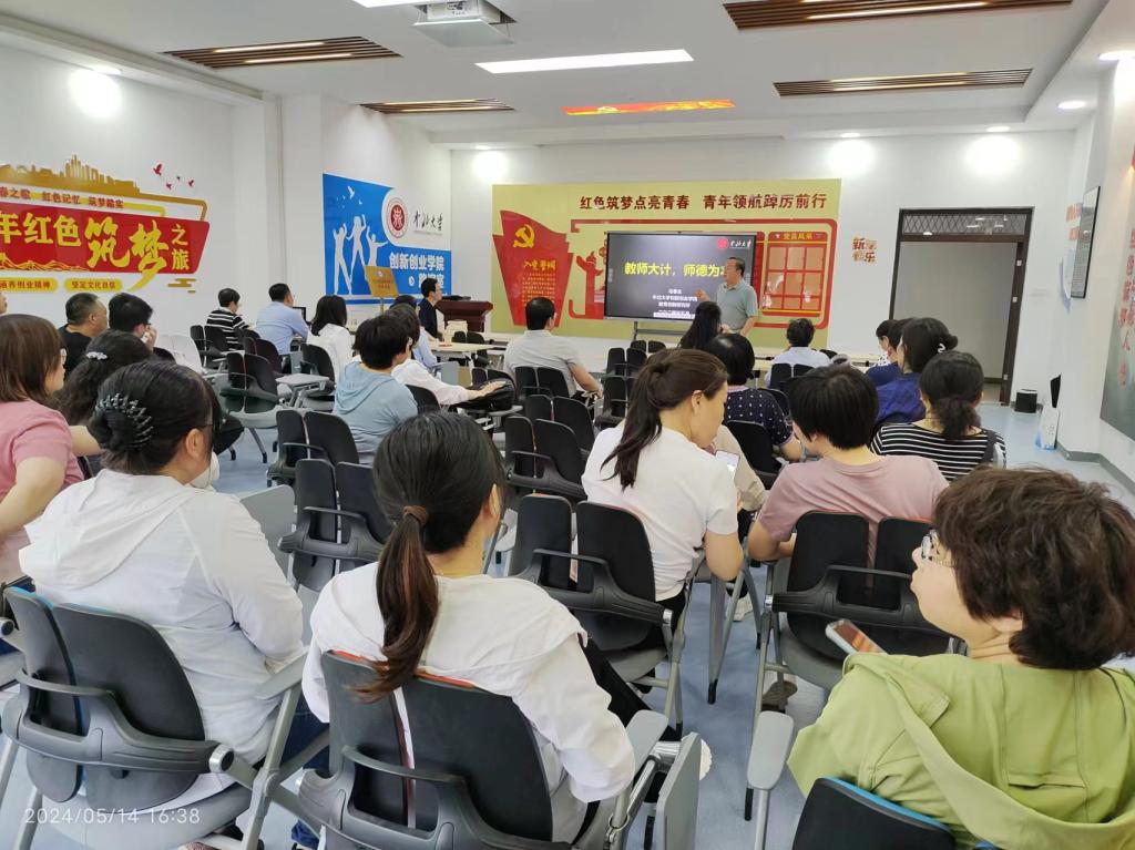 在A406会议室举办了“2024年师德师风专题教育培训会”,乐天堂Fun88马春生老师作了题为“教师大计,师德为本”的主题报告,乐天堂Fun88党总支书记高春强主持了此次活动。