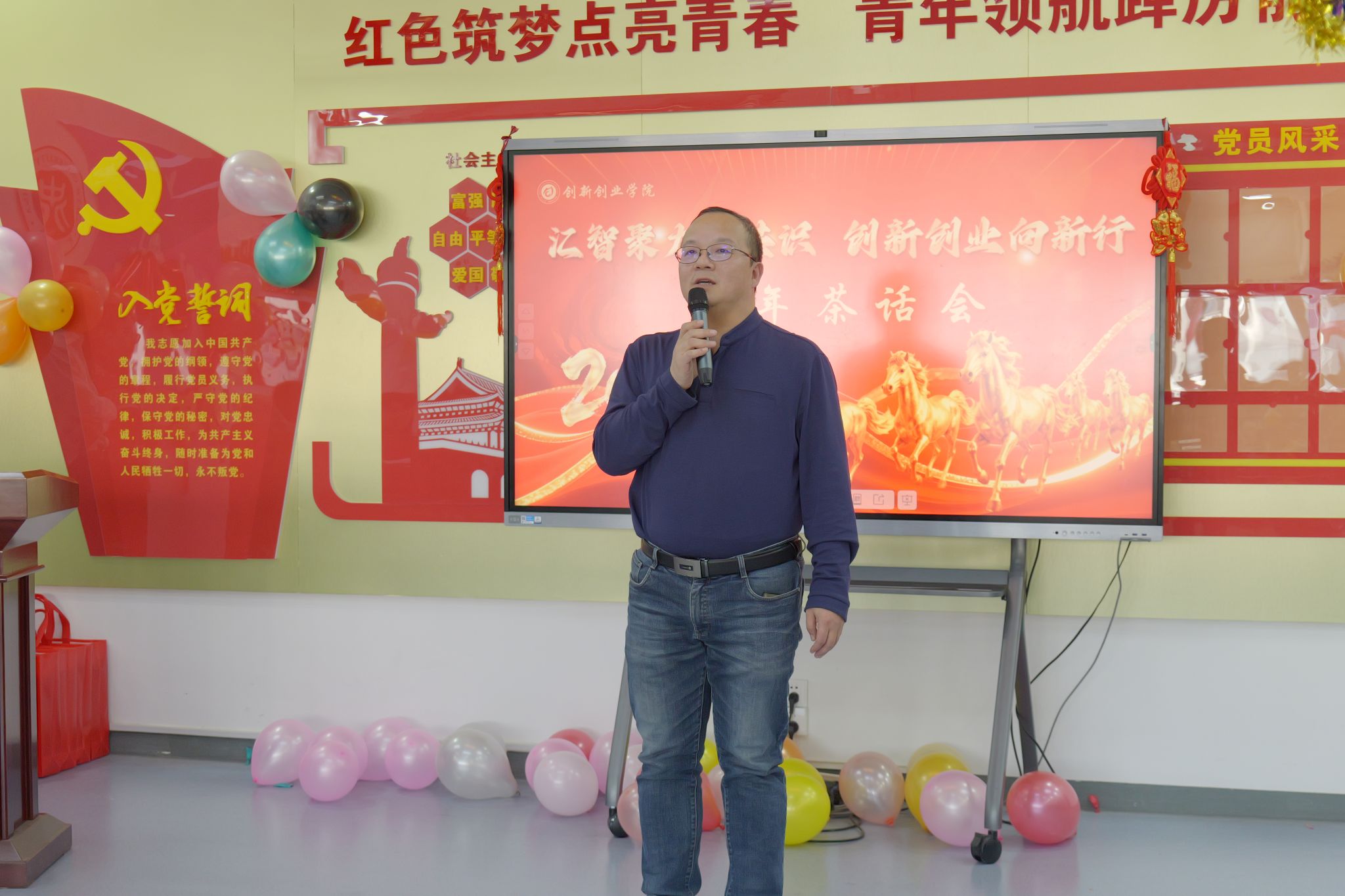 于学院办公室隆重举办以“汇智聚力凝共识创新创业向新行”为主题的新年茶话会。全体在职教职工与退休老同志欢聚一堂,共叙情谊、共话发展,在喜庆祥和的氛围中喜迎新年。